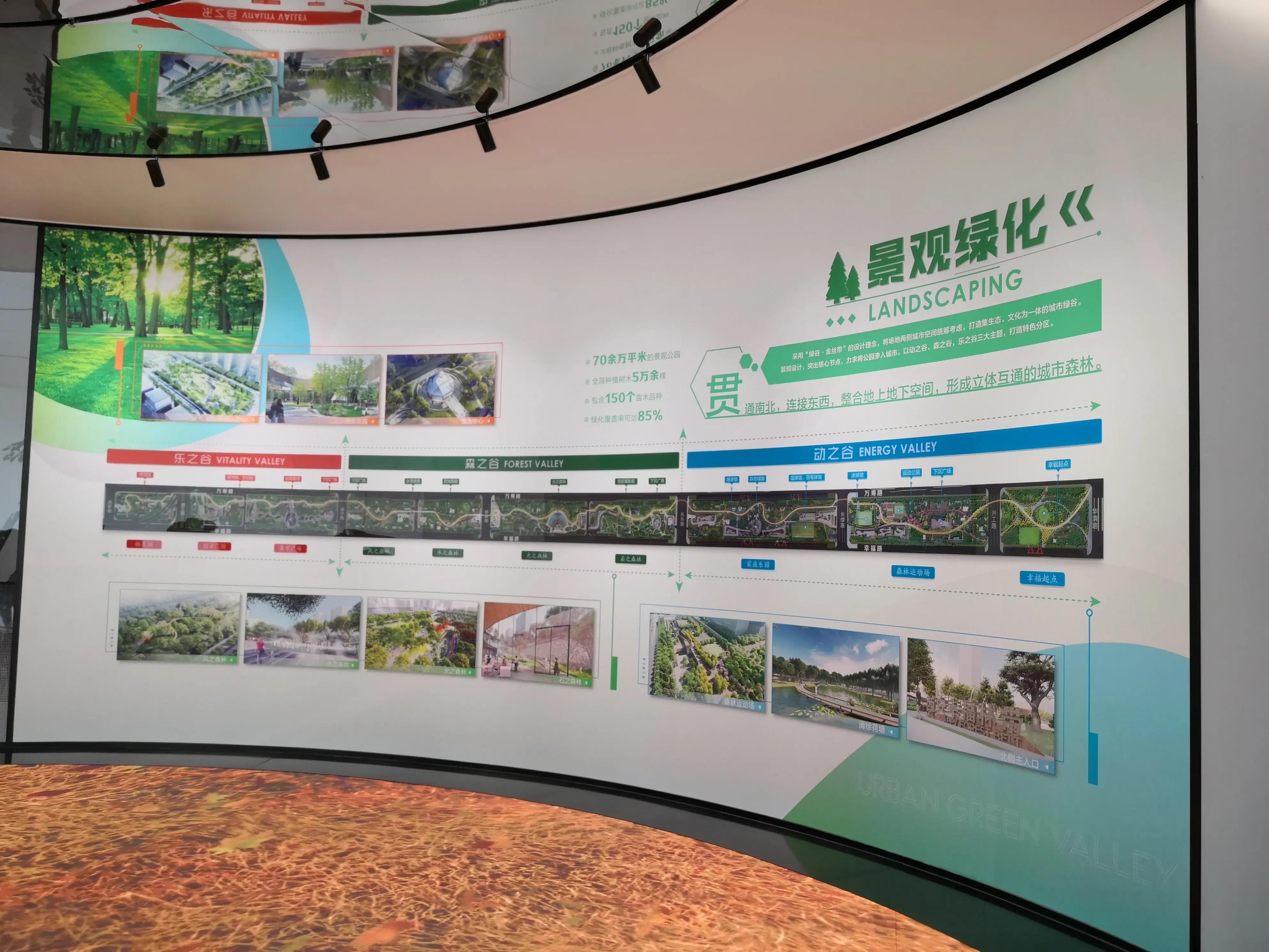 林带工程主要包括地上景观、市政道路、地下空间、综合管廊和地铁配套五项内容,其中:地上主要为绿化景观,面积约70万平方米,绿化覆盖率85%;市政道路改造12公里;地下空间共分三层,建筑面积92万平方米,负一层为商业及公共服务配套,面积42万平方米,负二层为停车场,车位7600个,负三层为综合管廊和地铁配套,管廊长12.28公里,地铁长6.1公里。