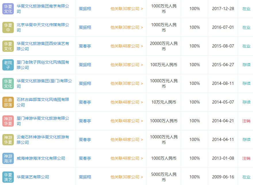 [size=0.8]华夏文旅华夏集团成立于1985年,注资成立华夏文旅集团。华夏文旅集团涵盖文化旅游,华夏演艺,主题公园旅游风景区投资运营管理,旅游餐饮酒店,旅游产品开发、托管运营等全链条的文化旅游产业集群,率先提出并确立了打造“城市文化旅游综合体”独特的文化旅游经营模式。
