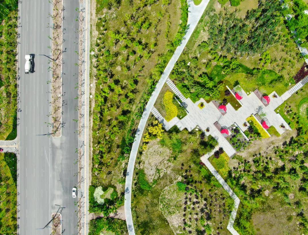 环形公园三期项目位于西咸新区沣西新城同德路以东,白马河路以西,沣景路以北,尚业路以南,全长1500米,宽150米,面积为23.77万平方米。项目通过微地形与园路灵动衔接,打造富有变化的流线地形,形成韵律十足的曲线步道。