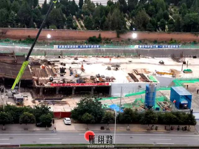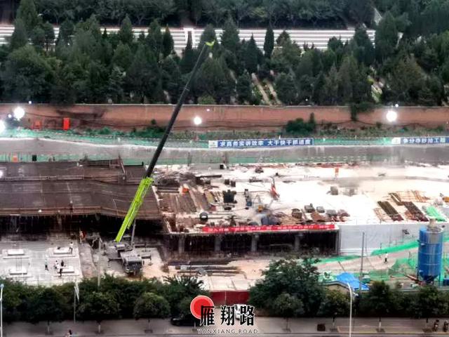 曲江悦动公园有一部分场地将用于雁翔路环形天桥的建设,从雁翔路网友投稿照片可以看出,公园的地下停车场基本已经完工,这里将和曲江政务中心的停车场相连。