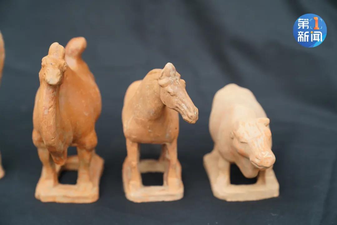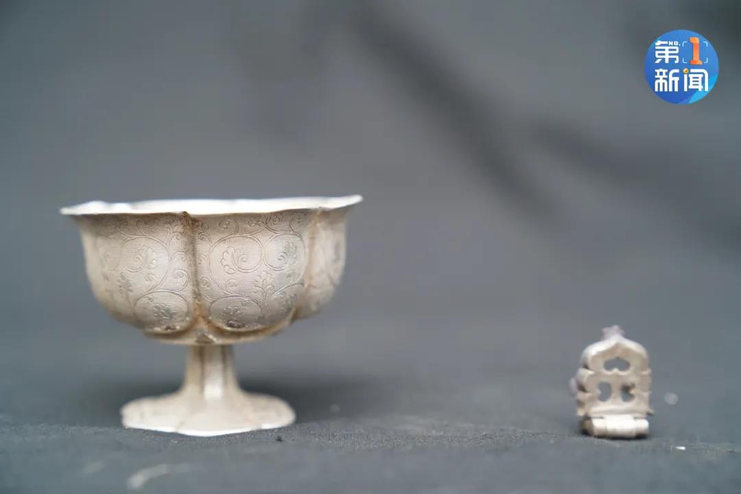 由于这些墓葬曾经遭到严重盗扰,考古人员在墓葬内发现了剩余的铜钱、陶人俑和动物俑等陶器、以及银带扣、葵口高足银杯等文物共计两百多件组。