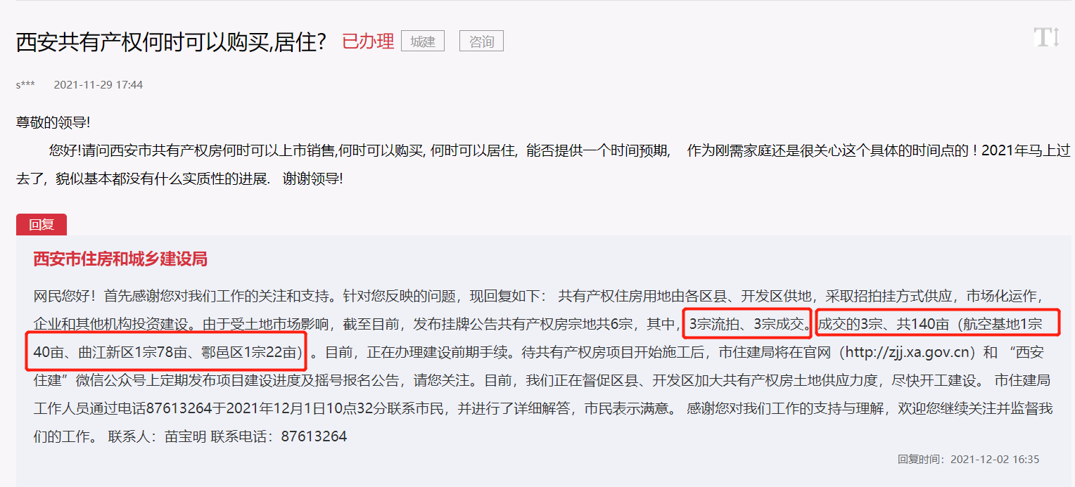 在领导留言板上,有市民曾咨询,西安目前的共有产权进度,截止去年底,西安共有产权用地成交3宗地,分别是航空基地1宗40亩、大明宫保护办共有产权房1宗78亩、鄠邑区1宗22亩。   来看看这三个项目的具体位置: