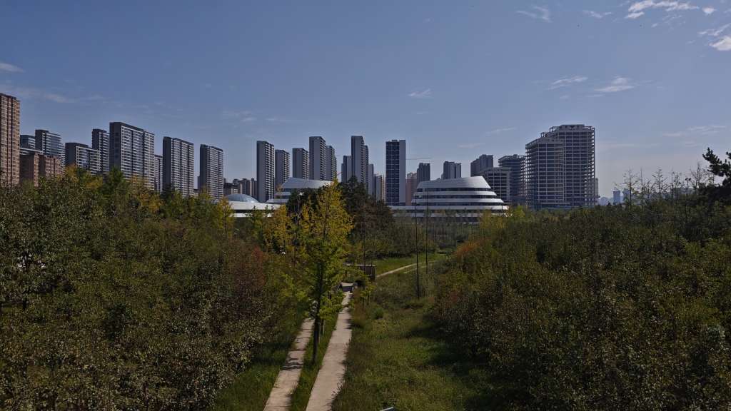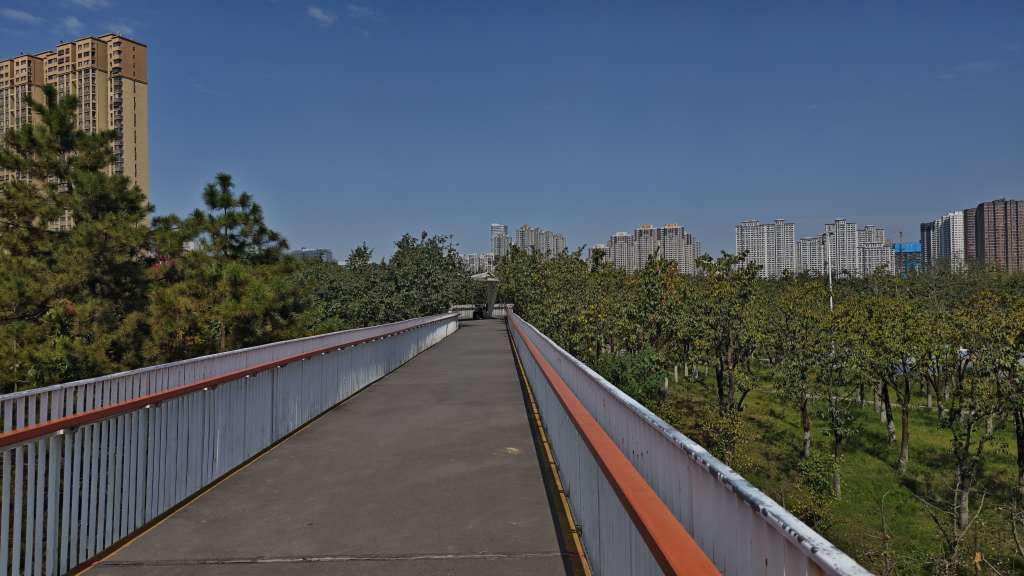 从雁南公园的天桥上骑行,可揽西高新的大美秋色