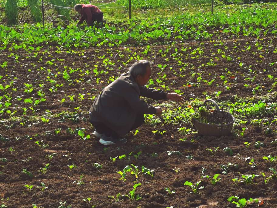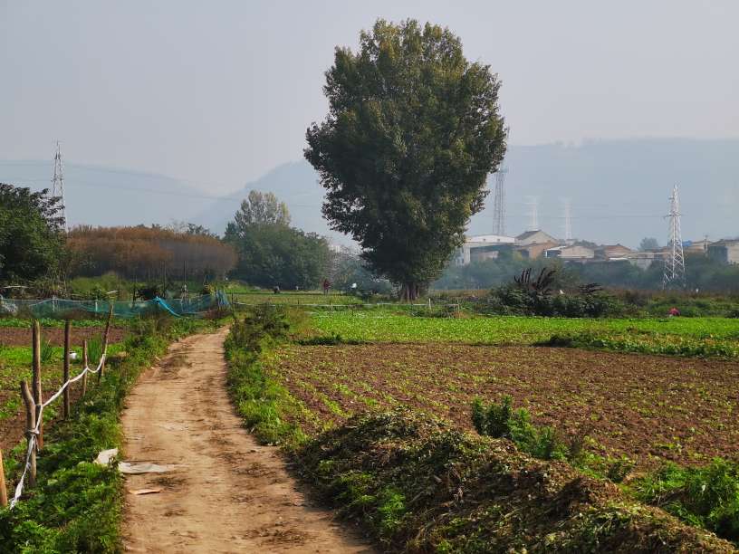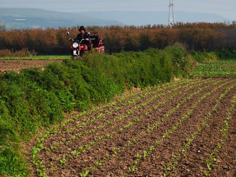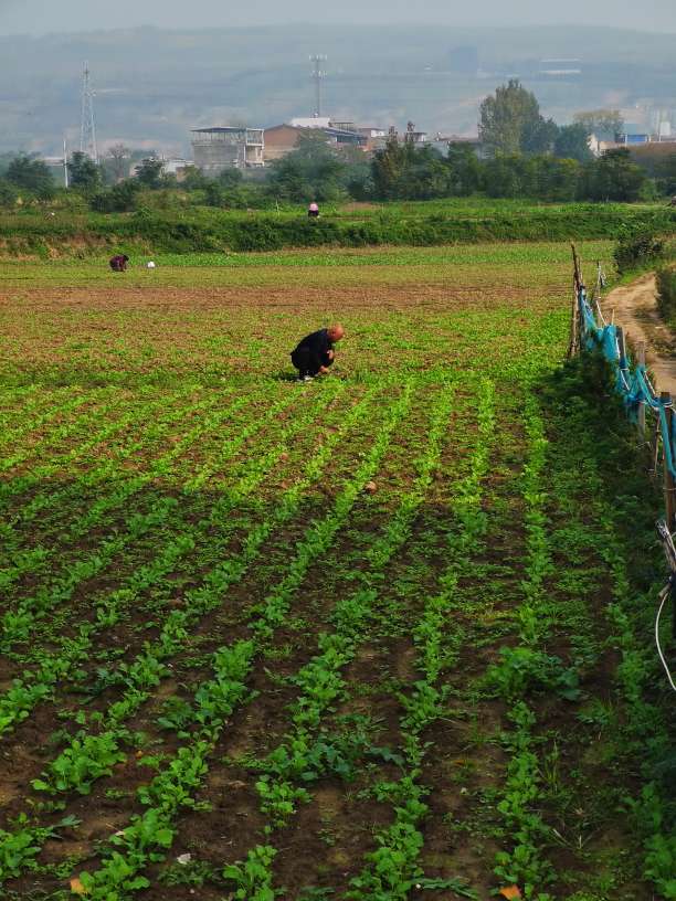 远处的原影比起云雨的秋天虽然颜色淡了点,但阳光下田野却是另一番景象。田地里的劳作是实实在在的,每一锄下去,都能看到土壤的变化。