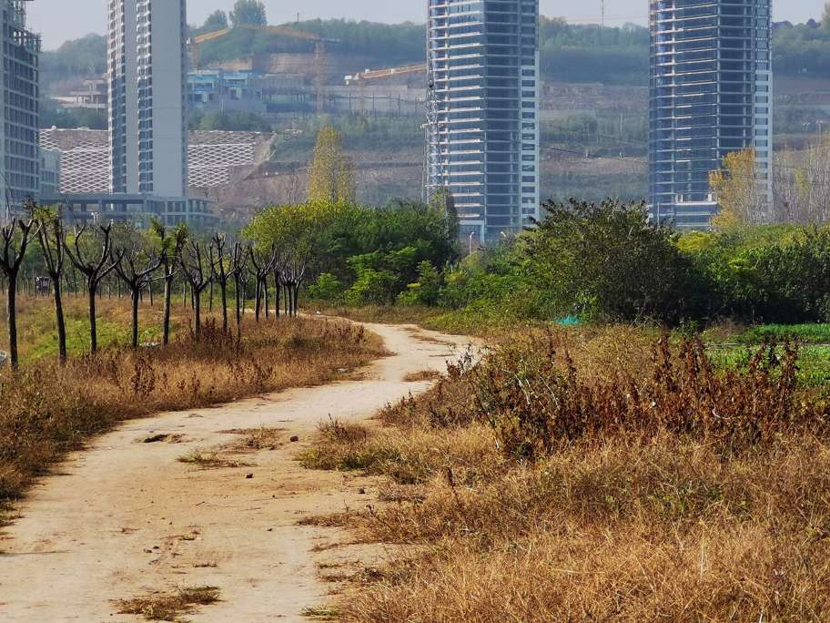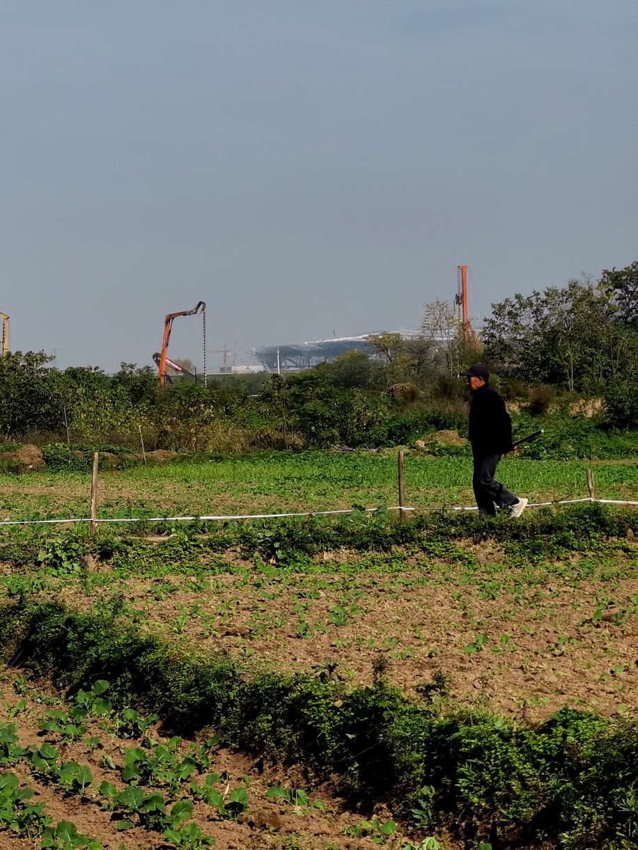 在这片田园的旁边,还有建设中的西安东站。那镶嵌在原下的“山脊”大屋面,终有一日会有驰骋在田园上的高铁。