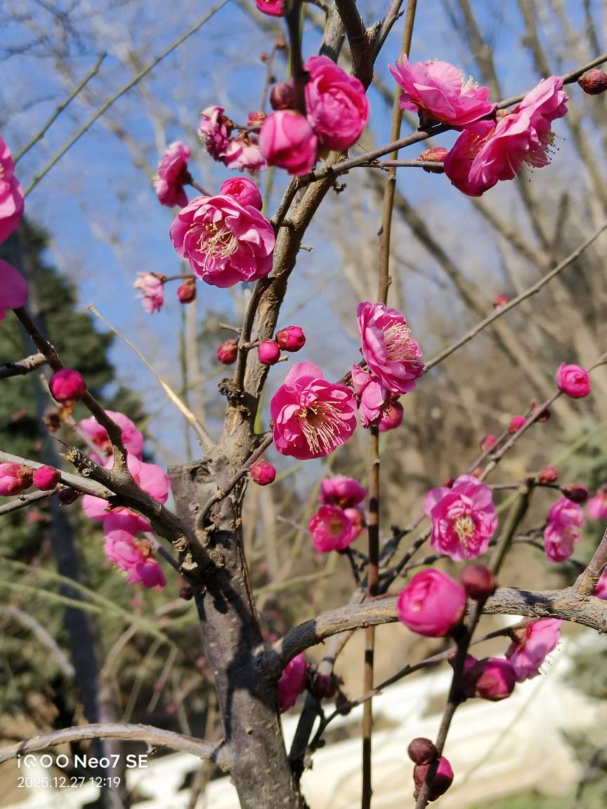 在料峭的寒风里,我听闻西安植物园的梅花已悄然绽放,便迫不及待地前往赴这场与梅花的冬日之约。