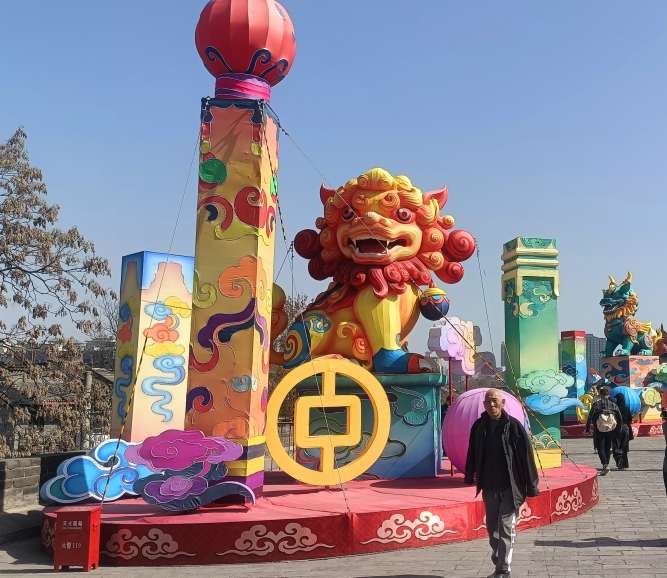 2月19日上午,我穿过永宁门吊桥,步入瓮城。瓮城被隔栏分隔,人们需绕多个回旋才能登上城墙。虽人山人海,却秩序井然。