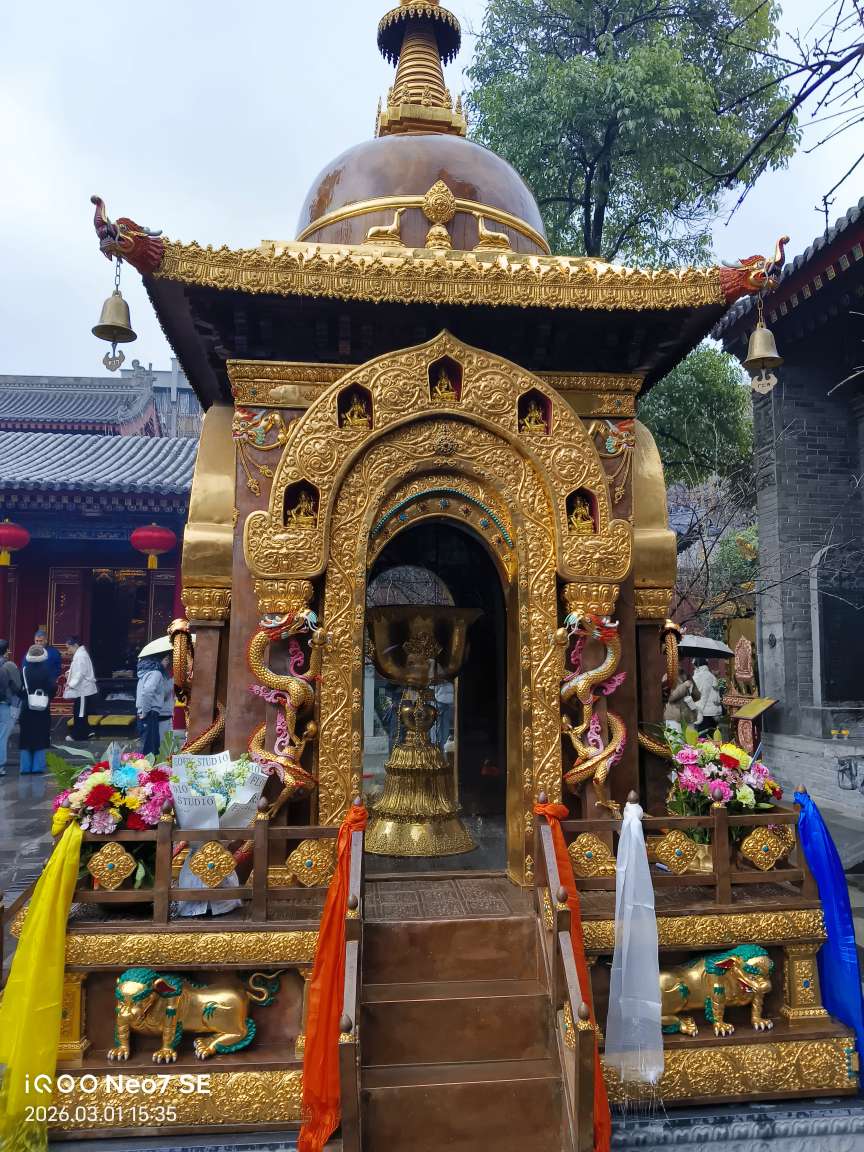 寺庙内的建筑错落有致,大雄宝殿、藏经楼、观音殿等建筑各具特色。大雄宝殿气势恢宏,殿内供奉着释迦牟尼佛像,佛像庄严肃穆,让人顿生敬畏之心。藏经楼内收藏着大量的佛教经典,这些经典是佛教文化的瑰宝,承载着千年的智慧和信仰。观音殿内的观音菩萨像慈悲祥和,仿佛在守护着每一位前来祈福的人。
